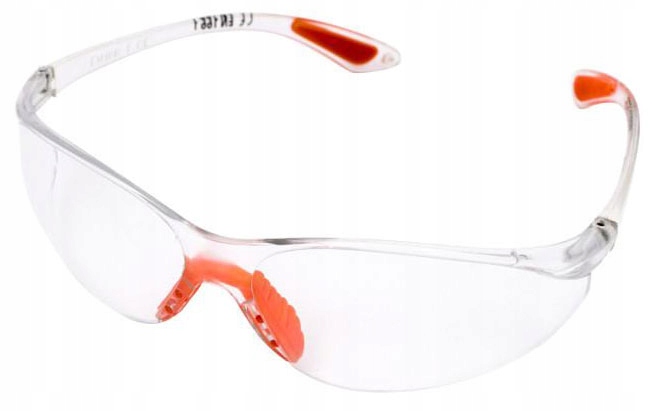 - Okulary ochronne chroniące przed odpryskami (cząstek o niskiej energii)
