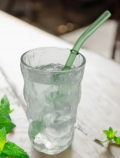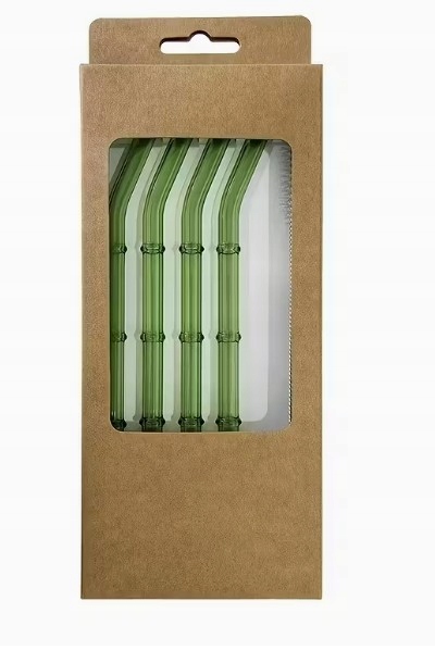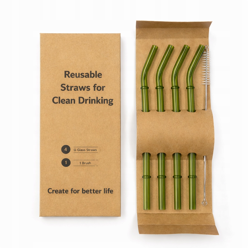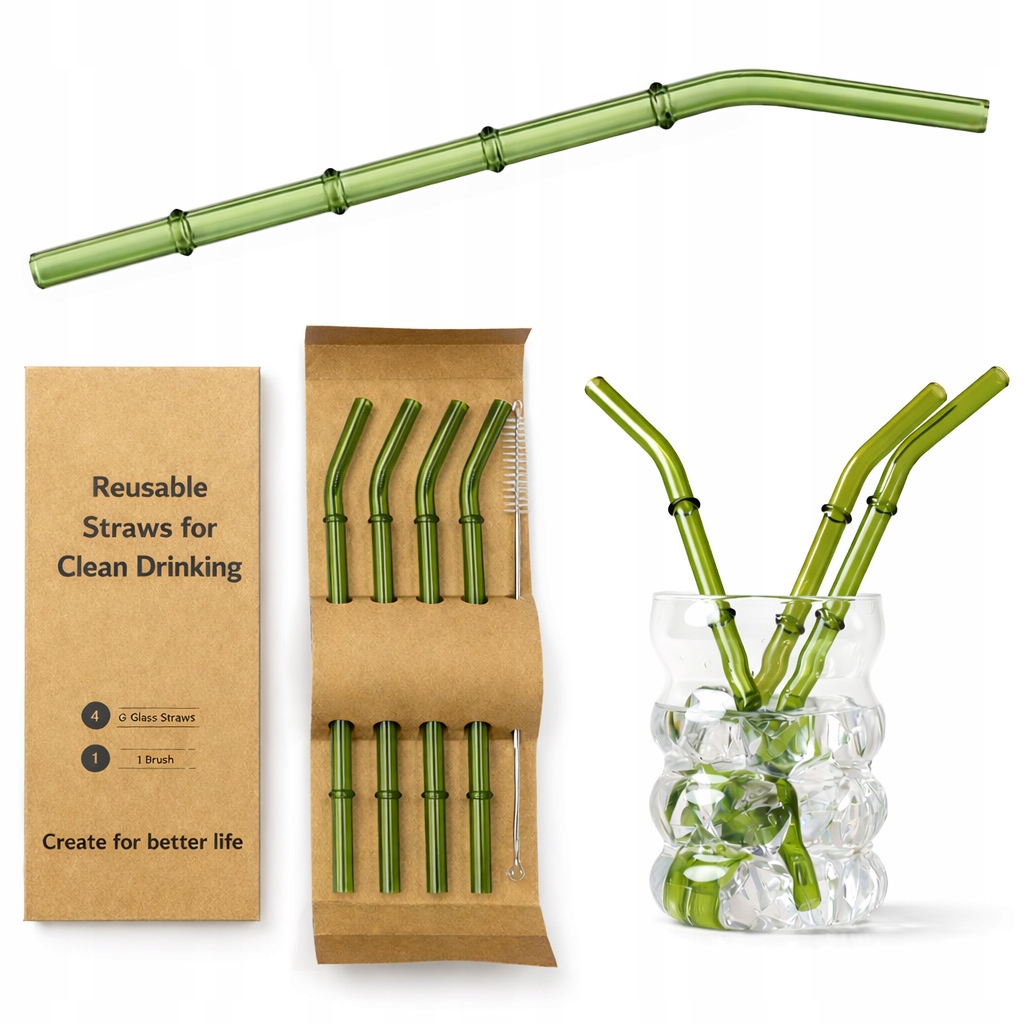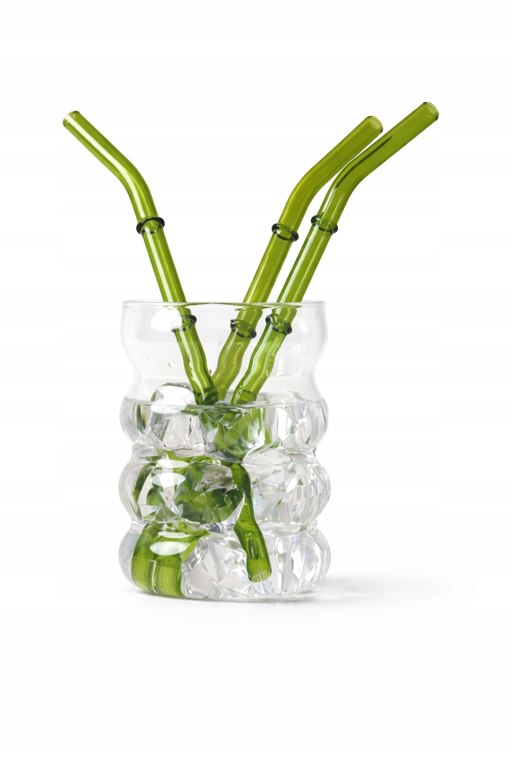 - 4 x kolorowe, szklane słomki (zakrzywione)