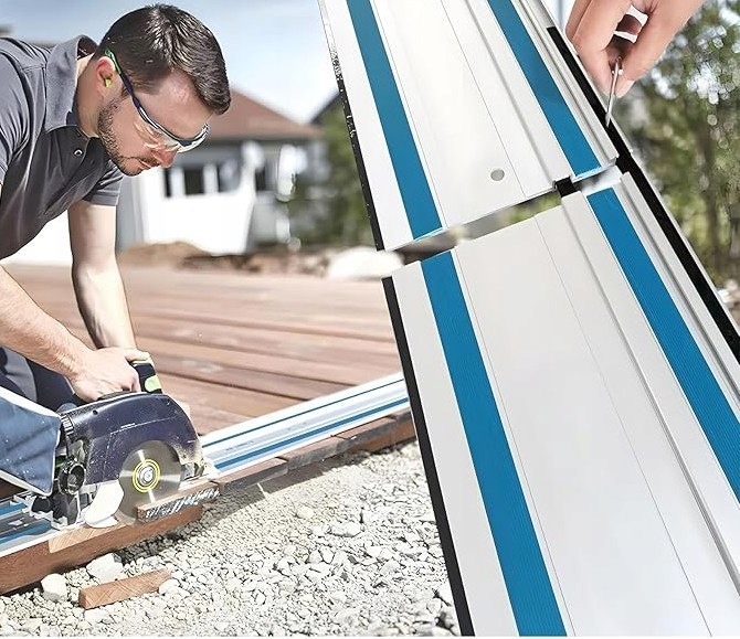 Dzięki solidnej konstrukcji i przemyślanej budowie listwa pasuje do większości zagłębiarek dostępnych na rynku – sprawdzi się zarówno przy cięciu laminatu, płyt MDF, sklejki, jak i drewna litego.