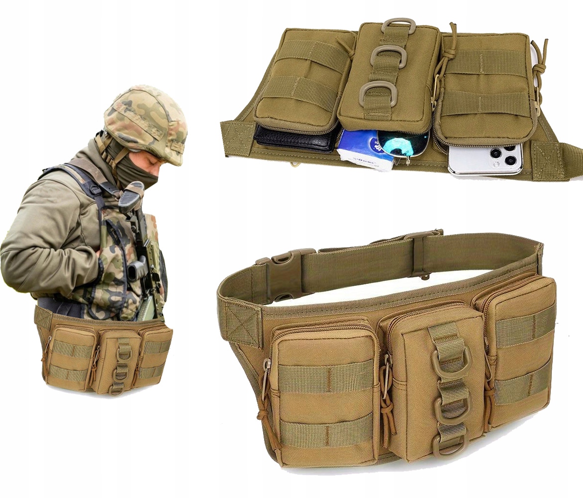 TORBA SASZETKA NERKA BIODRÓWKA POJEMNA DUŻA WOJSKOWA TAKTYCZNA KHAKI TAN
