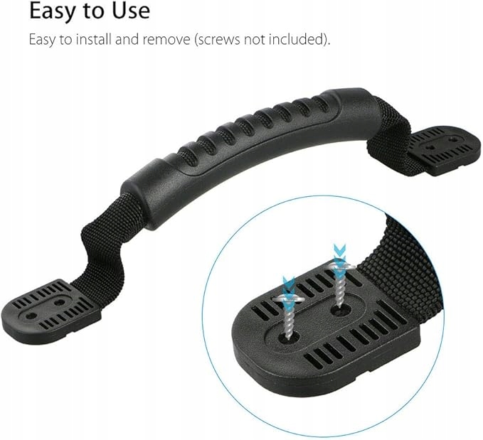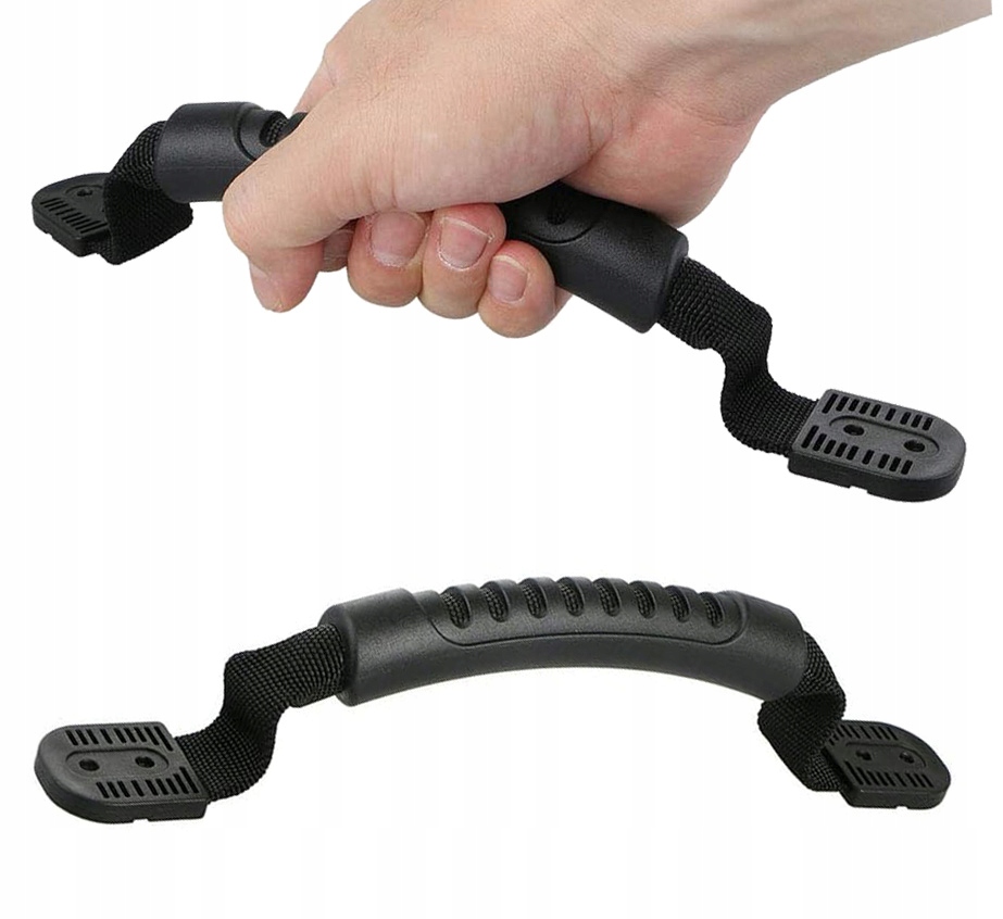 Praktyczna i solidna rączka do ogólnego zastosowania – świetna do montażu na torbach, skrzyniach, wózkach, pojemnikach czy sprzęcie outdoorowym. Wykonana z wytrzymałego tworzywa PVC oraz wzmocnionej taśmy nylonowej, gwarantuje długotrwałą odporność na obciążenia i warunki użytkowe.