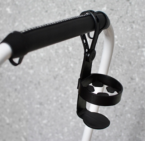 Praktyczny i funkcjonalny uchwyt na picie, który pasuje do większości butelek, bidonów i kubków.