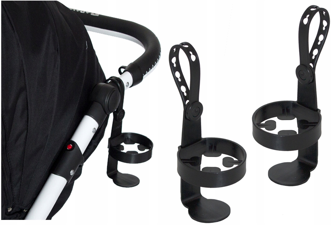 - Wygodny i uniwersalny uchwyt na napój do wózków/rowerków w kolorze czarnym