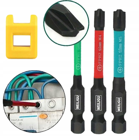 ZESTAW BITÓW dla elektryka BITY DŁUGIE MAGNETYCZNE UDAROWE KOMPLET FPH 3szt