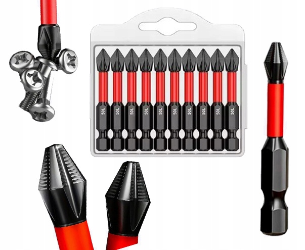 ZESTAW BITÓW UDAROWYCH KOMPLET KOŃCÓWEK DO WKRĘTARKI BITY PH2 10szt. 50mm