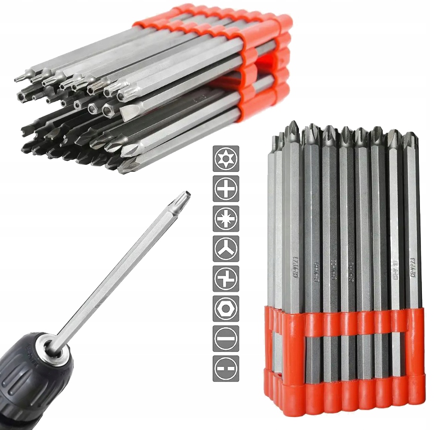 ZESTAW BITÓW UDAROWYCH KOMPLET KOŃCÓWEK DO WKRĘTARKI DŁUGIE BITY 32szt
