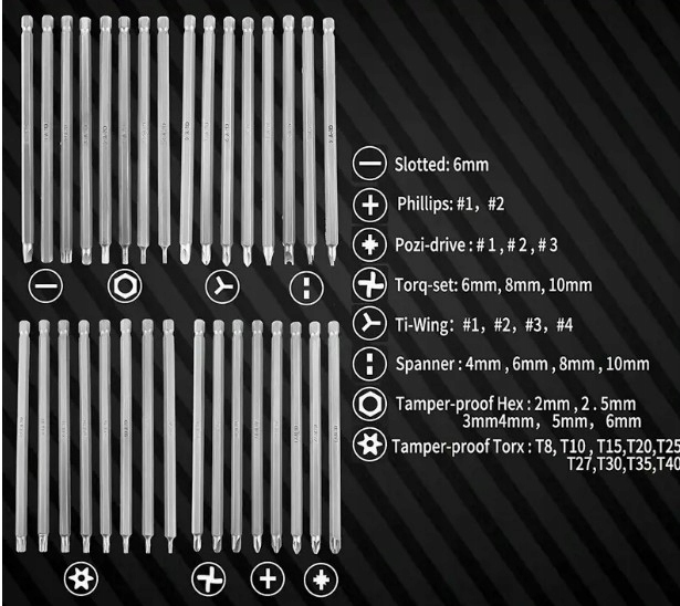 ✅Zestaw zawiera końcówki „BITY” 32szt.