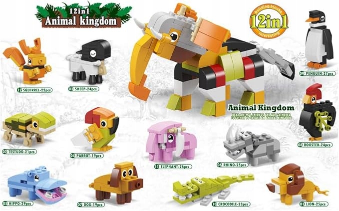 ZWIERZĘTKA AFRYKAŃSKIE KLOCKI FIGURKKI LUDZIKI ZESTAW Animal Kingdom