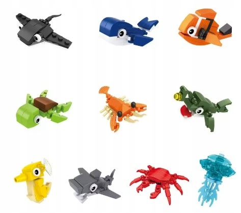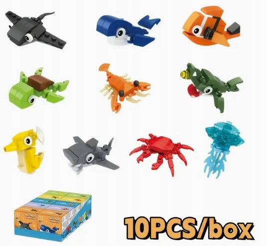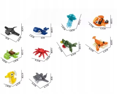 ZWIEŻĘTA MORSKIE OCEANICZNE KLOCKI FIGURKKI LUDZIKI PUZLE 3D ZESTAW 10
